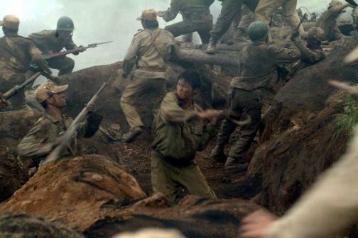 -그런데 비가 많이 내려서 진흙밭에서 촬영했고, 물웅덩이도 생겼고, 날씨도 추워서 주요 출연진과 시신 역할의 엑스트라들의 고생이 이만저만이 아니었다. 아마도 <태극기 휘날리며> 촬영중 가장 힘든 촬영장면이 아니었을까 생각된다.