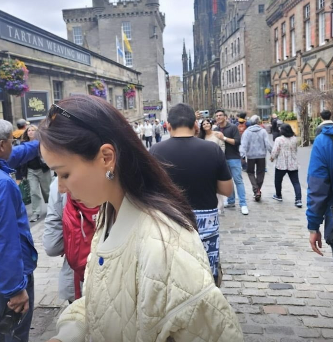 고소영이 자신의 인스타그램에 스코틀랜드 여행 중 찍은 사진을 게시하며 근황을 전했다. 사진 속 고소영은 따뜻한 방한용 퀼팅 패딩을 입고, 볼드한 링귀걸이와 명품 브랜드 D사의 선글라스를 매치해 스타일리시한 데일리룩을 완성했다.