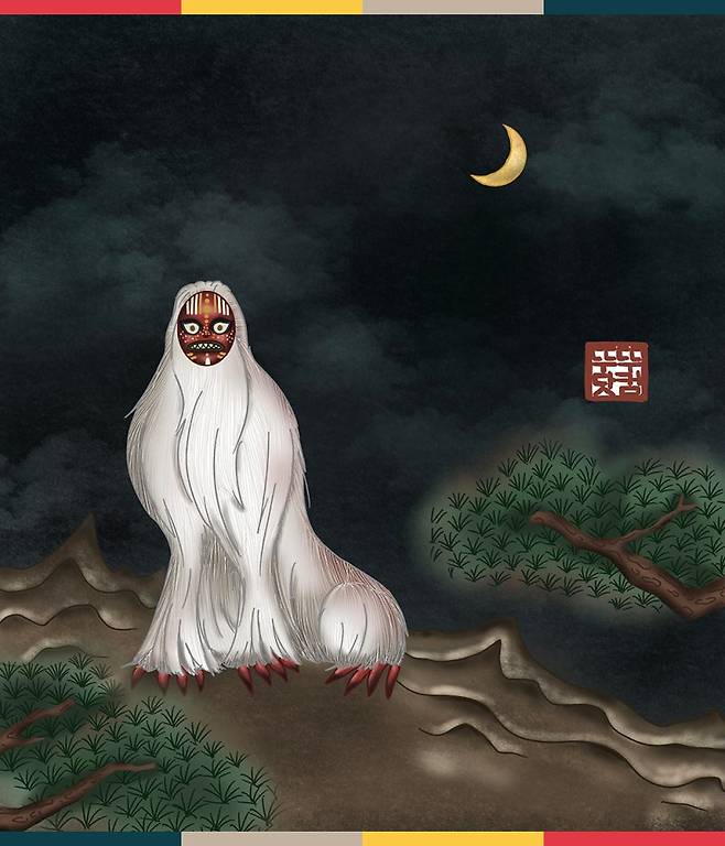 사람의 목소리를 흉내 내며, 온몸이 하얀 털로 덮인 정체불명의 존재.