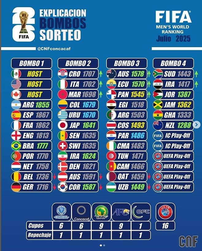 FIFA는 월드컵 본선 조추첨 때 오는 11월 FIFA 랭킹에 따라 48개국을 12개국씩 4개 포트로 나눌 예정이다. 이에 따라 FIFA 랭킹 23위 정도를 오가는 한국은 사상 처음으로 포트3 혹은 포트4가 아닌, 포트2에 들어갈 가능성이 커졌다.