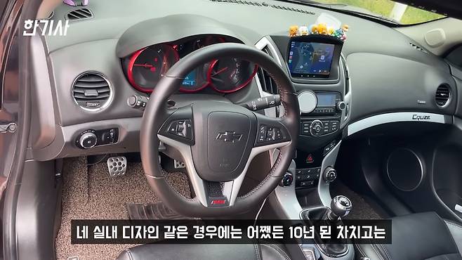 그리고 실내 디자인 같은 경우는 어쨌든 10년 된 차 치고는 레이아웃도 괜찮고 송풍부 같은 가운데 센터페시아 부분도 이 시절 차 치고는 세련되고 예쁘다고 생각합니다. 실내 디자인 또한 기존 라세티 프리미어에서 크루즈로 넘어가게 되면서 그대로 뭐 거의 계승했다고 봐도 무방할 것 같은데요. 일반 네비로 달려있었는데 걔는 이제 오래되다 보니까 후방 카메라 용도밖에 안 돼서 그 네비를 애플 카플레이 되는 네비로 제가 바꿨고요.