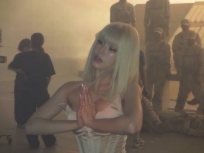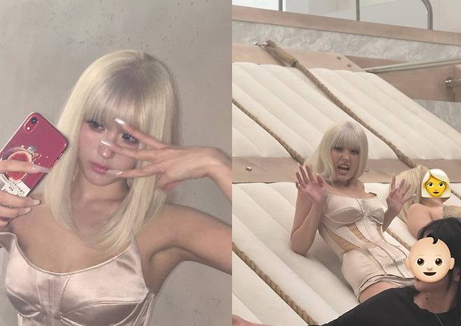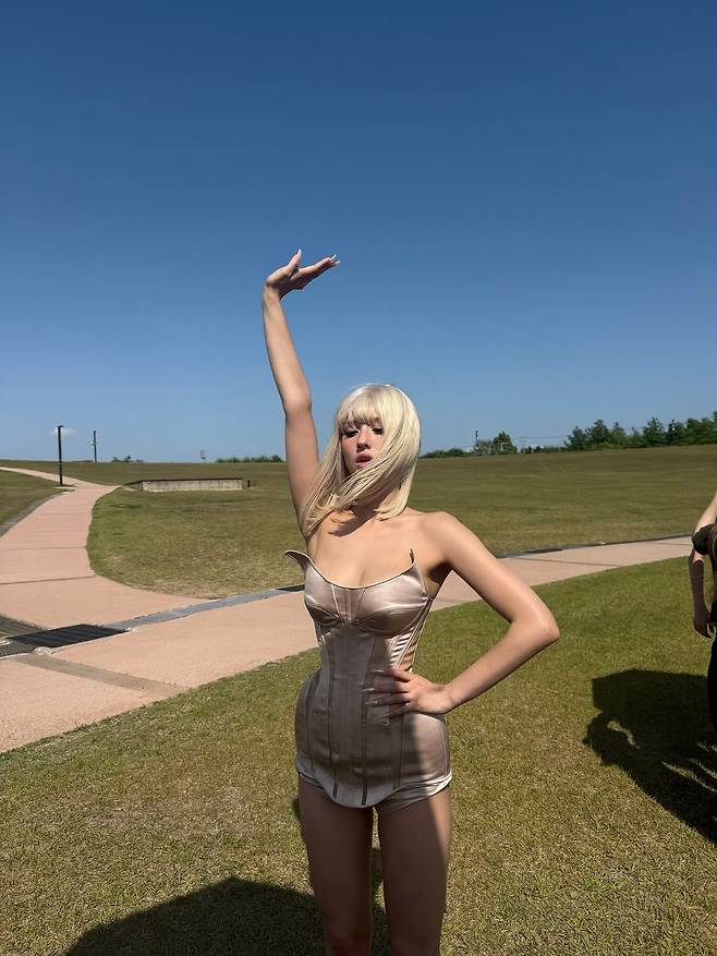 크림 컬러의 보디슈트와 과감한 스타일링도 완벽하게 소화하며, 인형 같은 미모에 독특한 존재감을 더했다.