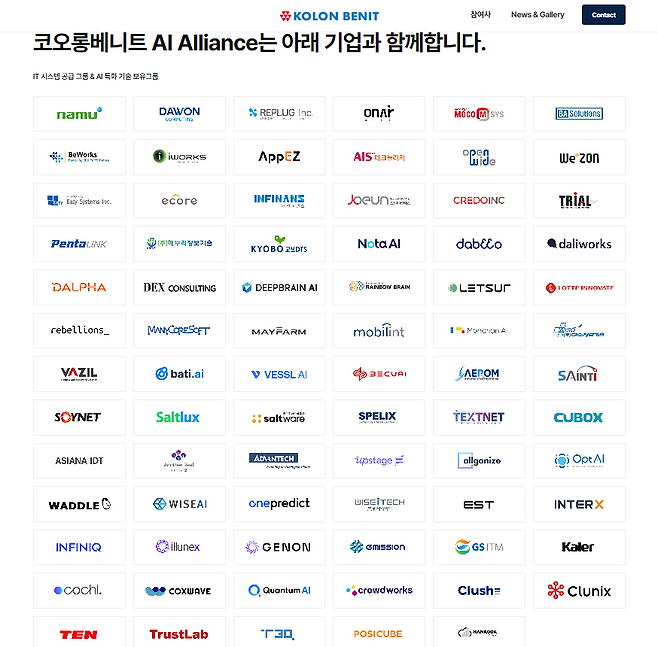 인공지능(AI) 생태계가 빠르게 형성되는 가운데 코오롱베니트가 중소 AI 기업들과 손잡고 'AI얼라이언스'를 출범하며 시장 공략에 나섰다. AI얼라이언스는 코오롱베니트가 중심이 돼 각 기업의 AI 기술을 조합해 프리패키지 형태로 제공한다. 이를 바탕으로 각 고객사에 최적화된 맞춤형 솔루션을 공급한다.