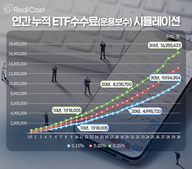 ETF수수료(운용보수) 0.1% 차이, 30년이면 632만 원 더 낸다