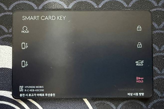 카드형 스마트키는 크레딧 카드와 비슷한 크기로 주머니나 지갑에 간편하게 보관할 수 있다. 충전식 배터리를 사용하며 무선 충전이 가능하다. 현대모비스는 해당 스마트키를 통해 디자인과 기능성 모두를 만족시키겠다는 의지를 밝혔다.