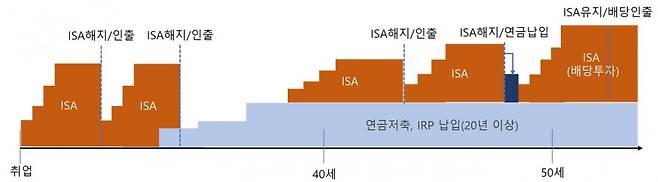 연금납입을 충분히 하고 있다면 여유자금을 ISA로 운용하고 이때까지는 해외주식형 상품과 같은 고위험 투자가 적합하며 비과세 한도가 소진되었다면 해지 후 재가입하는 것도 검토해야 합니다. 이후 노후 대비가 부족하다고 판단되는 경우라면 ISA 해지자금을 연금으로 추가 납입하는 것이 도움이 될 것입니다.