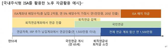 자산규모가 어느 정도 형성된 경우라면 ISA를 국내투자형으로 운용해 금융소득 종합과세 대상이 되더라도 지속적으로 유지되게 해두어야 합니다. 이때 자금이 필요한 경우라면 해지를 통해 자금을 활용할 수 있겠지만 노후 대비를 위한 경우라면 해지하지 말고 2억원의 분리과세 배당연금계좌로 활용할 수 있습니다.