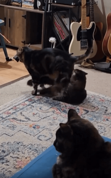 이 장면을 본 사람들의 반응은 “강아지: 한 대, 두 대, 그리고 도망ㅋㅋ”, “고양이 멘붕한 표정 너무 웃기다”, “이건 약간 장난 같으면서도 선 넘은 발차기 아님?”이라며 폭소를 자아냈습니다. 어떤 이는 “고양이가 반격 안 한 걸 보니 진심 당황한 듯”이라는 코멘트로 상황을 정리하기도 했죠.
