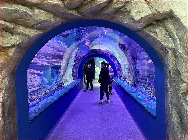 충주아쿠아리움에서 가장 인기가 많은 공간 중 하나는 수중 터널입니다. 투명한 터널 위로 물고기들이 유유히 지나가고 물빛이 흔들리며 공간 전체를 채우는 장면은 관람객들에게 강한 인상을 남깁니다. 특히 철갑상어처럼 몸집이 큰 어종이 가까이 지나갈 때면 아이들도 어른들도 자연스럽게 발걸음을 멈추게 됩니다.