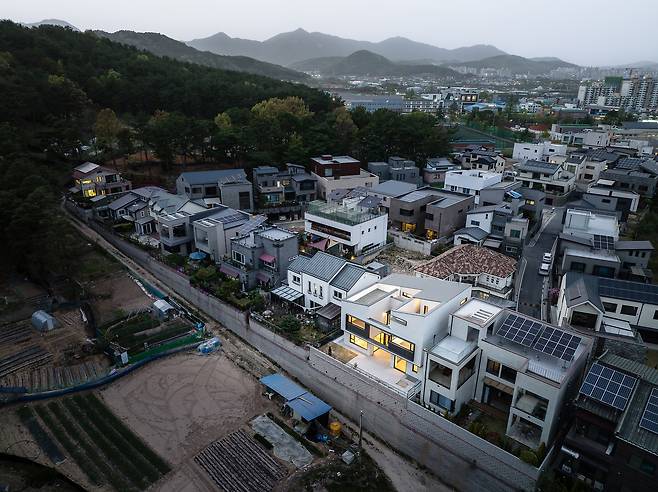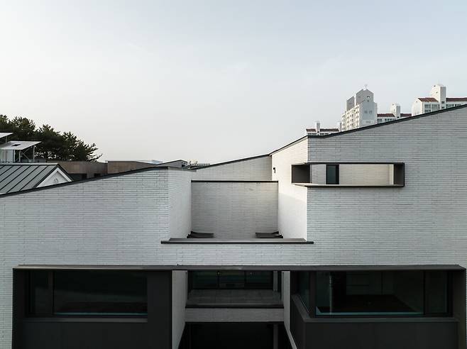 근처 아파트에 살고 있던 어린 두 아이와 부부는 단독주택 단지 내에 위치한 친구 집을 자주 왕래하며 단독주택의 삶을 꿈꾸게 되었고 그 꿈을 실행에 옮겼다. 조성된 단독주택 단지는 프라이버시를 위해 공용도로 측은 닫되 내부 중정형 마당을 갖는 것이 일반적이다. 다행히 대전 주택은 단지의 가장 남측에 위치하면서도 낮은 산자락을 마주해 열린 풍경을 얻을 수 있었다. 수려한 경관과 채광이 좋은 남측에 큰 창을 가진 주요 실들을 배치해 환기가 잘 되고 쾌적한 생활환경을 조성했다.