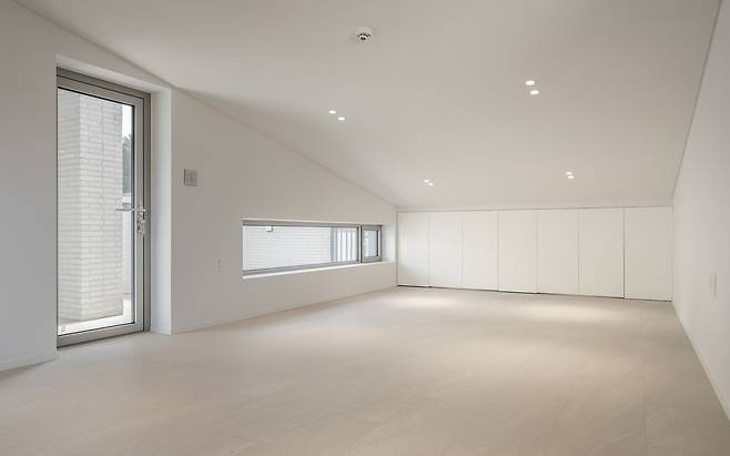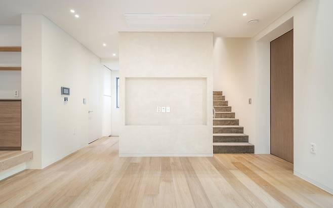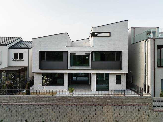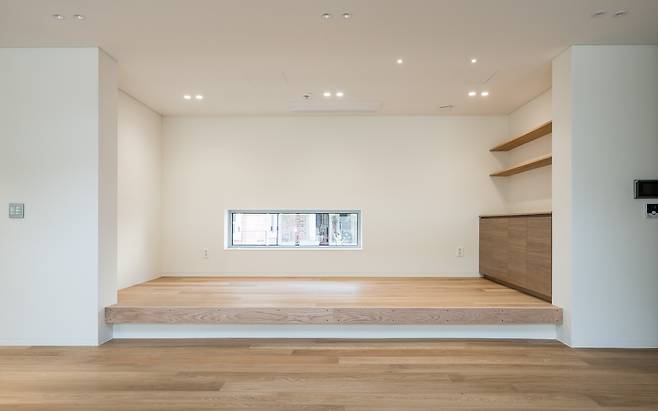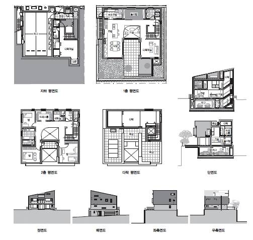 손님 영역과 가족의 영역을 구분하기 위해 주택단지의 조성 환경을 이용하기로 했다. 주택단지는 도로보다 한 층이 높게 조성돼 있었다. 우리는 도로와 같은 레벨인 지하층에 주차장과 함께 손님영역의 공간을 만들어 1층부터 계획된 가족의 영역이 지켜질 수 있도록 했다.