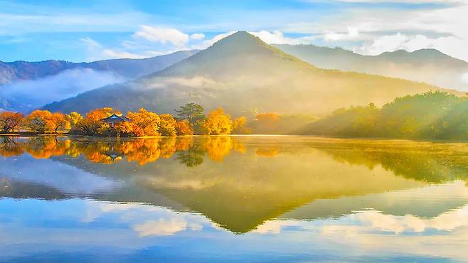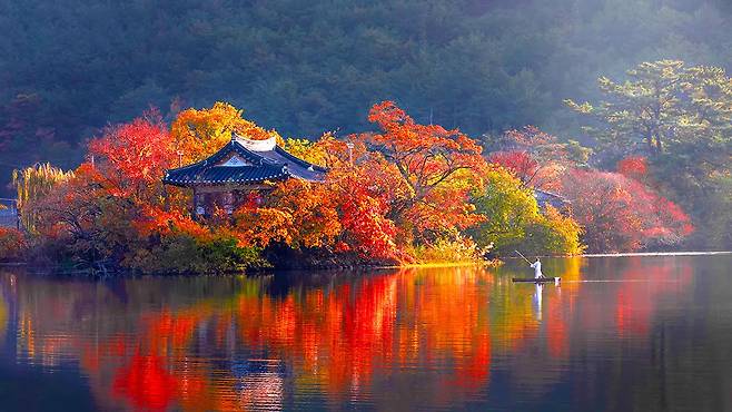 1900년 안동 권씨 문중이 세운 이 정자는, 그 자체로 동양화 한 폭입니다. 이곳에 앉으면 단풍과 정자, 수면 위 반영이 만들어내는 압도적인 정적의 미학이 마음을 사로잡습니다.