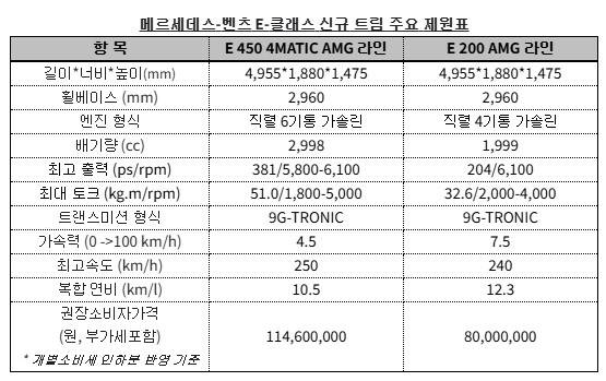 두 모델 모두 AMG 프론트·리어 에이프런, AMG 전용 휠, AMG 플로어 매트 등 스포티한 AMG 라인 디자인 요소를 적용했다. 여기에 E-클래스 고유의 여유로운 실내 공간, 정숙성, 첨단 주행 보조 시스템, 인포테인먼트 시스템 등 기존 장점도 그대로 유지했다.