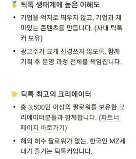 리: 이제 틱톡커들을 위한 팁을 좀… 광고 만들 때 제일 중요하게 생각하시는 건 무엇인가요?