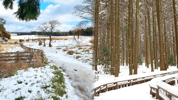 이곳의 대표적인 건축물인 테쉬폰은 아치형 구조로 독특한 외관을 자랑합니다. 눈 덮인 테쉬폰 건물과 목장의 설경이 어우러진 풍경은 사진으로 남기기에 완벽한 장면을 선사하는데요. 실제로 웨딩촬영 명소로도 유명하며, 자연 속 아날로그 감성을 가득 담을 수 있는 포토존으로 인기가 많습니다.