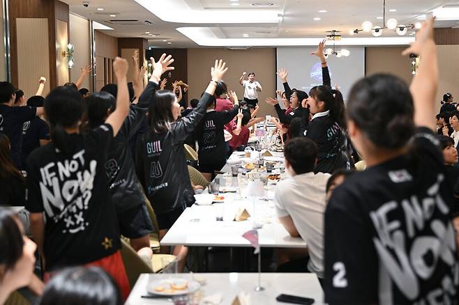 이를 지켜본 WKBL 관계자는 "총재님께서 활기찬 분위기를 원하셨다. 그리고 어린 선수들이 추억을 쌓는 게 환영 행사의 핵심이었다"라며 환영 행사를 긍정적으로 여겼다.