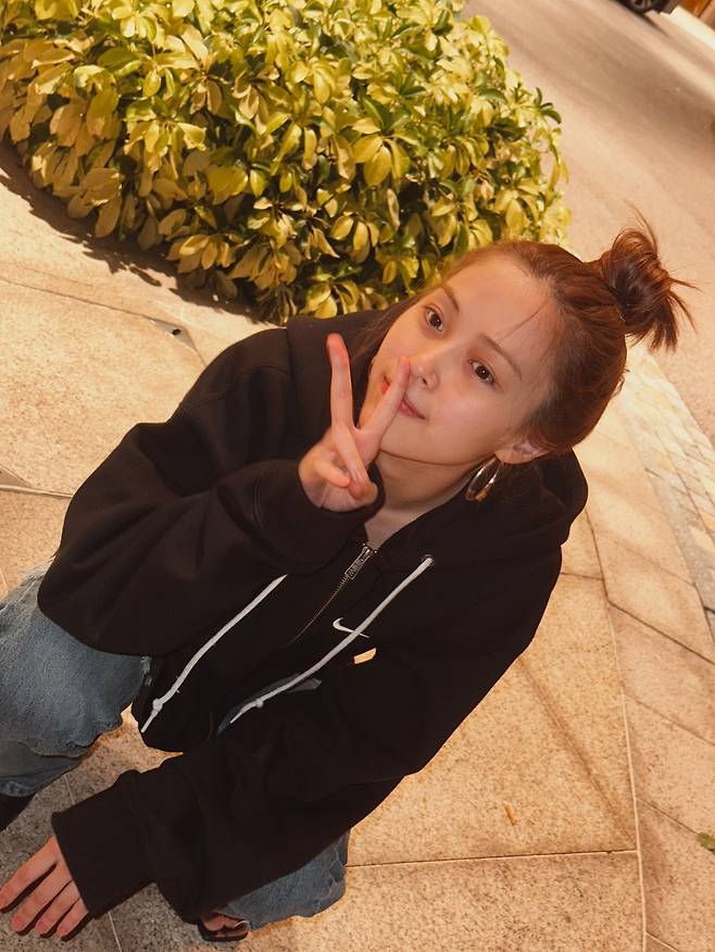 그녀의 스트릿 패션 포인트는 ‘편안함 속의 균형감’이다. 후드와 데님의 조합은 누구나 쉽게 따라 할 수 있는 데일리룩이지만, 번 헤어와 골드 이어링 같은 작은 디테일이 세련된 포인트를 완성한다. 여기에 무릎을 굽히며 자연스럽게 포즈를 취한 컷은 화보 같은 감각을 연출했다.