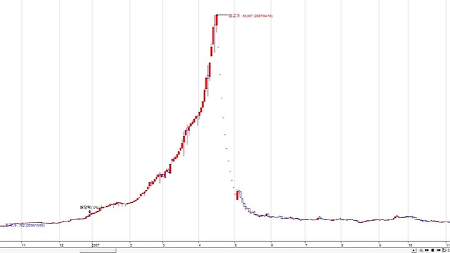 2007년 4월 중순부터 시작된 하락세는 11거래일 연속 하한가라는 경이로운 기록을 세우며 시장을 공포로 몰아넣었다.