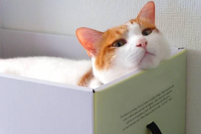 집사 눈에 골판지 상자는 단지 택배 상자에 지나지 않지만, 고양이에게 골판지 상사는 집으로서 흠잡을 곳 없습니다.