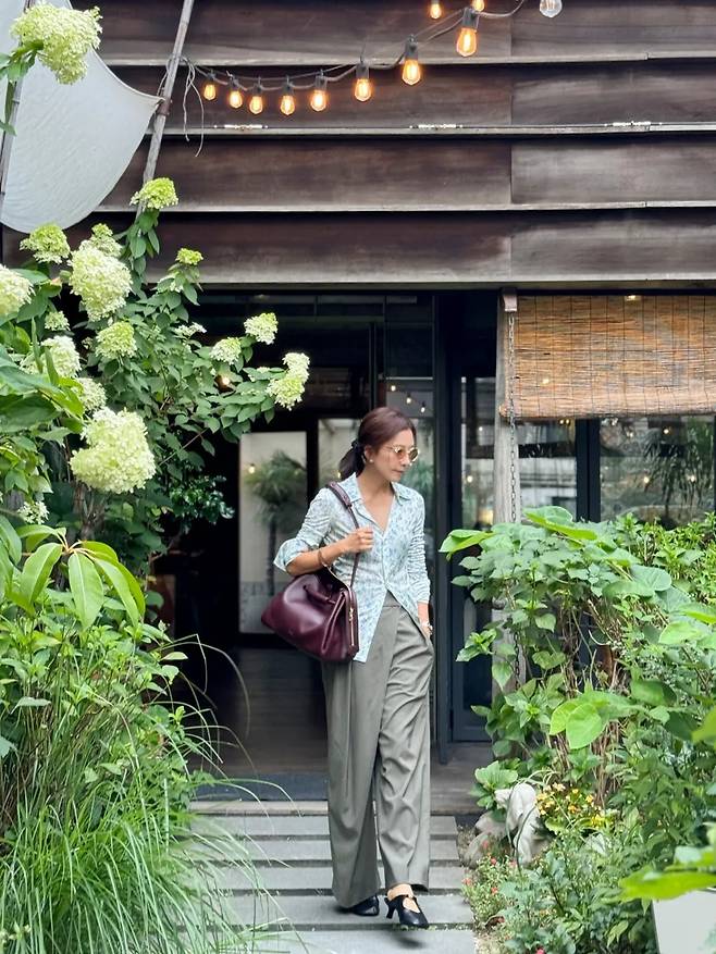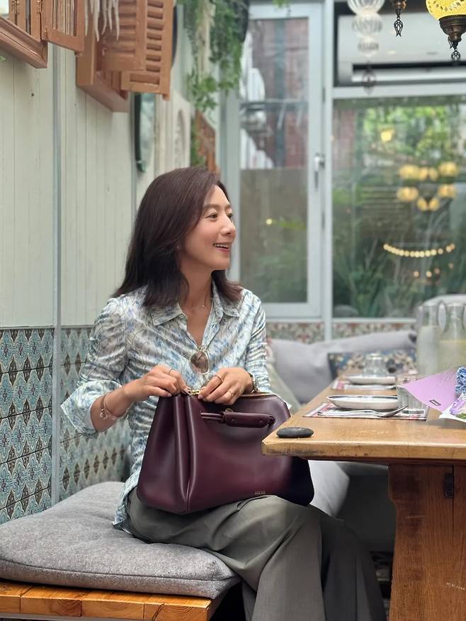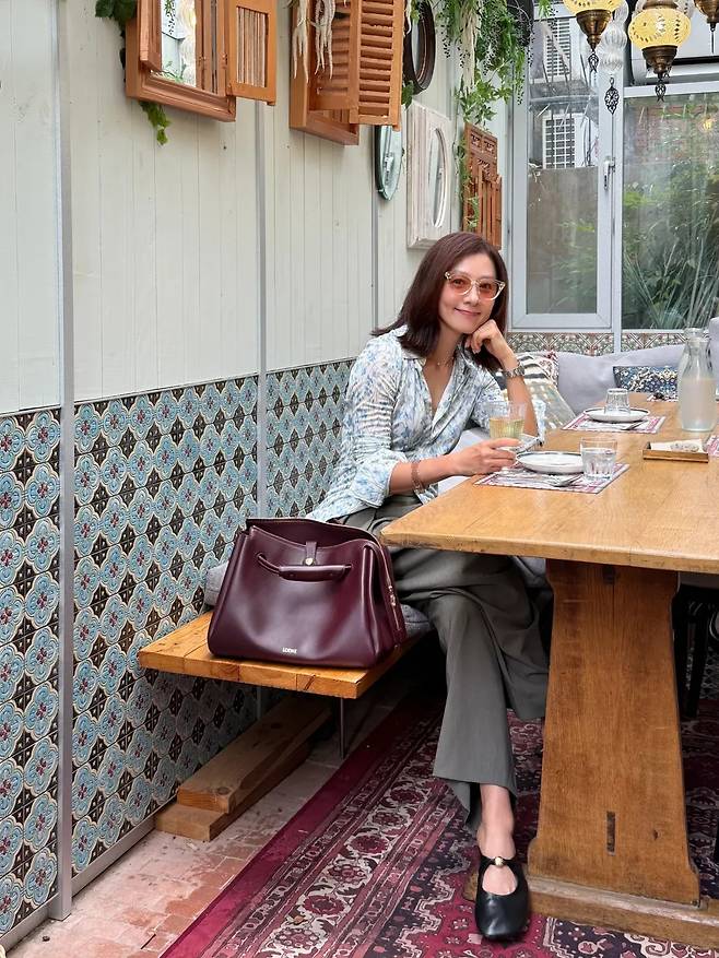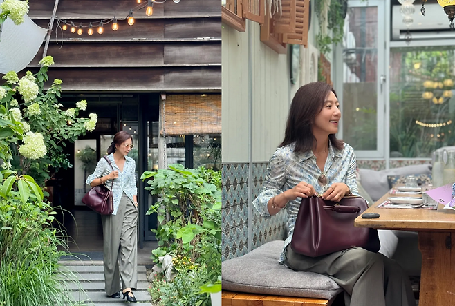 초록 잎사귀가 그늘을 드리운 테라스, 도시 한복판에서 김희애가 보내는 점심 한 끼는 마치 짧은 여행의 한 장면처럼 다가온다.