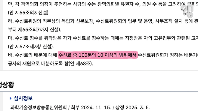 지금 법에서도 수신료를 인상하려면 지금 KBS 이사회에서 인상안을 마련하도록 돼 있어요. EBS의 몇 퍼센트를 줄 거냐도 그 인상안에서 정하는 걸로 정하도록 되어 있어서 우리는 그게 비정상적이다, 제도 개선이 필요하다라고 얘기하는 거죠.