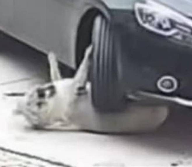 순식간에 차량 바퀴 밑에 깔린 골든 리트리버 강아지는 아프다면서 낑낑거리며 울부짖었다고 합니다.