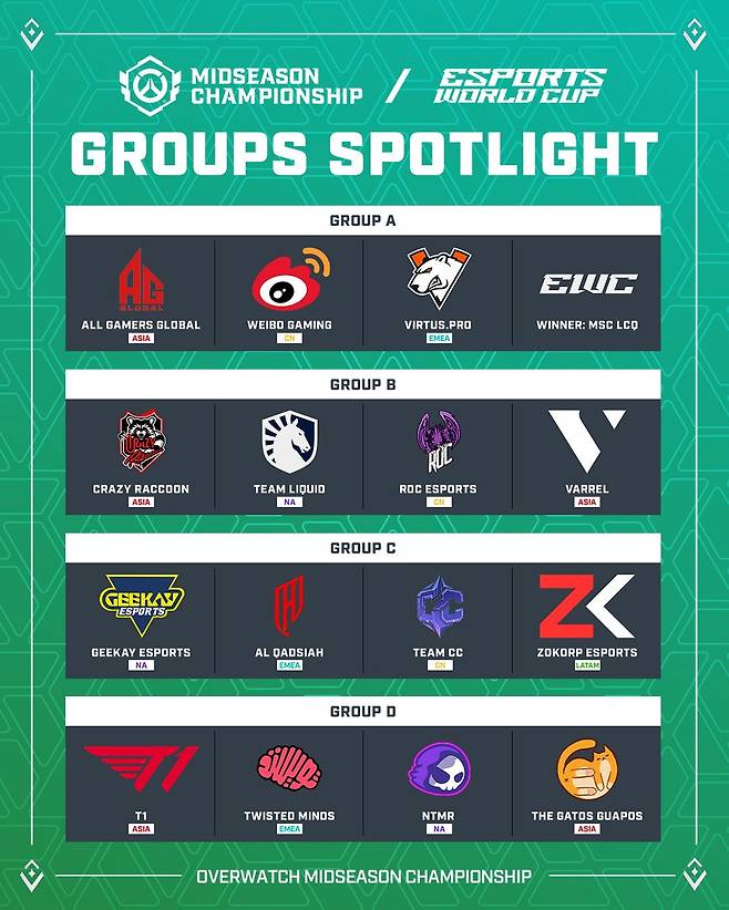 2025 OWCS 챔피언스클래시 우승팀인 크레이지 라쿤(Crazy Raccoon), OWCS 코리아 스테이지 2에서 준우승을 차지한 T1, OWCS 코리아 3위를 기록한 올 게이머즈 글로벌(All Gamers Global), OWCS 재팬 스테이지 2 우승팀 바렐(VARREL), OWCS 퍼시픽 스테이지 2 우승팀 더 가토스 과포스(The Gatos Guapos) 등 아시아 지역 최강 5개팀과 지난 20일 e스포츠 월드컵 최종 진출전(EWC Last Chance Qualifier)에 참가해 미드시즌 챔피언십행 티켓을 획득한 팀 팔콘스(Team Falcons)와 중국, 북미, 유럽 · 중동 · 아프리카, 남미 지역을 대표해서 출전하는 팀들 포함 총 16개 팀이 세계 최강팀의 자리를 놓고 경쟁을 펼친다.