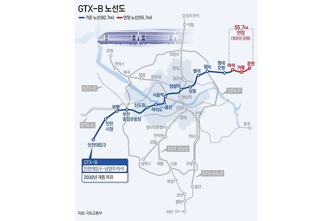 GTX-B가 개통되면 송도에서 여의도까지 23분, 서울역까지는 29분 만에 이동이 가능하다. 특히 평내호평역에서 서울역까지의 이동 시간도 기존 1시간 이상에서 20분대로 단축된다. 이에 따라 인천을 비롯한 수도권 외곽 지역에서 서울 도심으로의 접근성이 크게 향상될 전망이다.