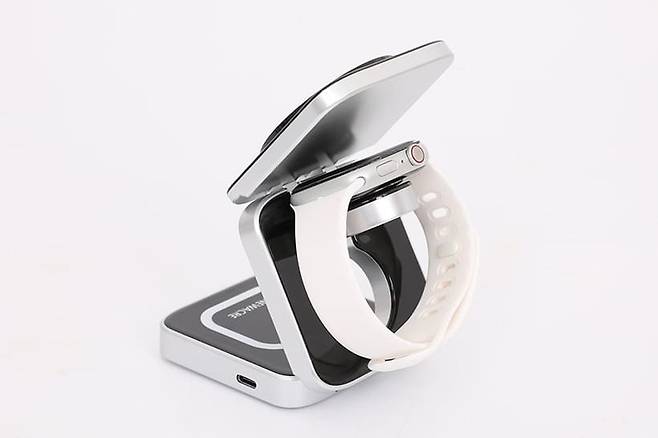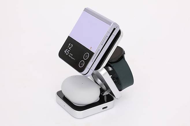 세 가지 기기의 충전부가 각각 따로 존재하기 때문에 스마트폰과 스마트워치, 무선이어폰을 동시에 충전하는 것도 가능하다.