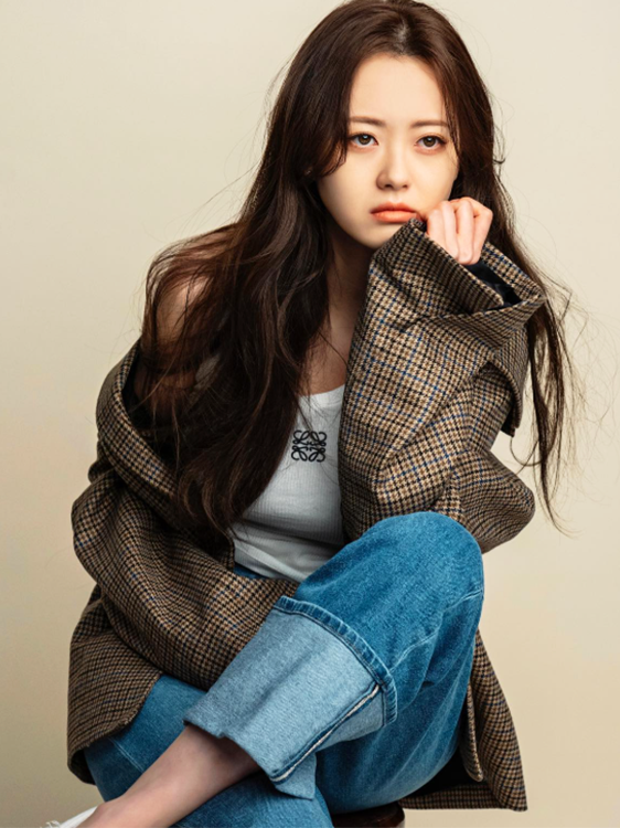 밝은 색감의 데님 소재는 전체적인 스타일에 청량감을 더하며, 자연스럽게 웨이브진 헤어스타일과 어우러져 고아라만의 세련된 무드를 완성했다.