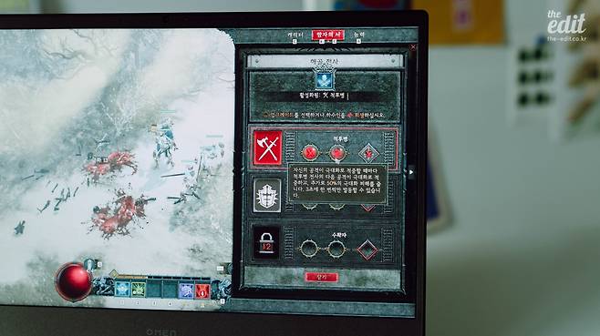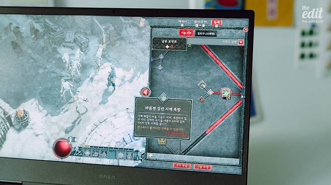 디아블로4 때문에 게이밍 노트북 하나 장만하고 싶을 정도다. 참고로 내가 사용한 노트북은 HP OMEN16이다. 고사양 게임을 리뷰하기 위해 대여한 게이밍 노트북이다. 몬스터가 쏟아지고 시체가 여기저기에서 폭발하는 전투씬에서도 버벅임이 없었다.
