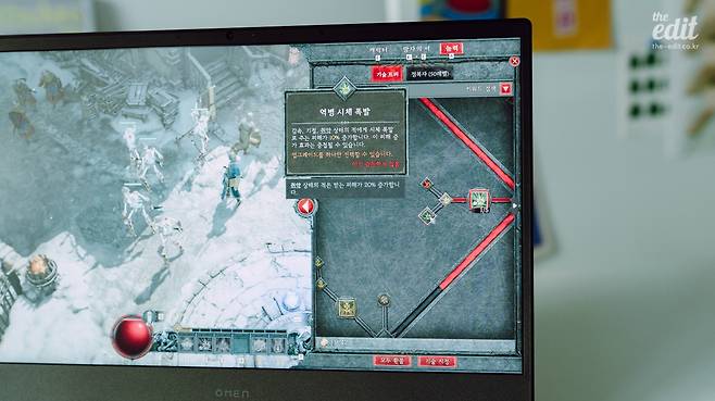 디아블로4 때문에 게이밍 노트북 하나 장만하고 싶을 정도다. 참고로 내가 사용한 노트북은 HP OMEN16이다. 고사양 게임을 리뷰하기 위해 대여한 게이밍 노트북이다. 몬스터가 쏟아지고 시체가 여기저기에서 폭발하는 전투씬에서도 버벅임이 없었다.