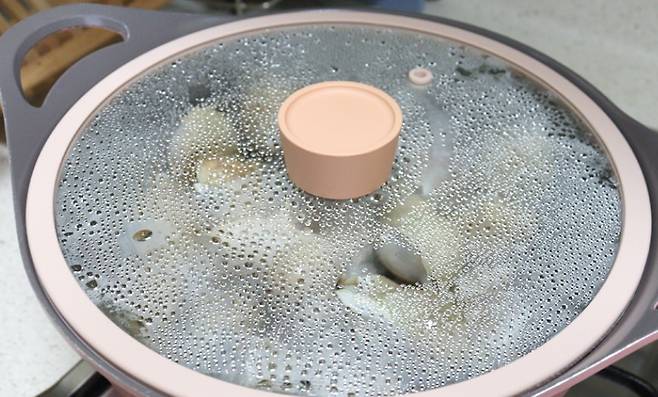 뚜껑을 덮고 20분 쪄주세요. 20분 후 불을 끄고 5분간 뜸을 들이면 완성입니다.