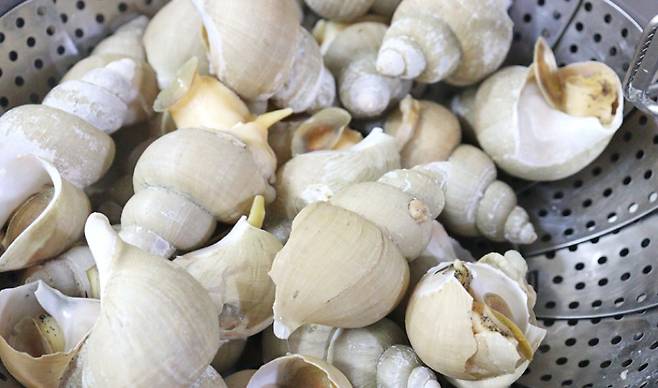 백골뱅이는 내장까지 먹을 수 있어 영양이 풍부하고요. 통통하게 살이 오른 고동은 부드럽지만 쫄깃한 식감을 자랑해요.
