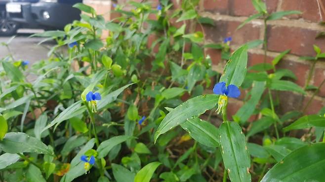 꽃이 커다란 귀를 가진 미키마우스를 연상시키는 닭의장풀(Commelina communis)은 도심 주변에서 흔히 볼 수 있는 잡초예요. 볕이 상대적으로 들지 않는 닭장 근처에서 잘 자라는 풀이라 하여 닭의장풀이라는 이름이 붙었다고 하는데, 중국에서 부르는 이름인 압적초(鴨跖草)(오리 발에 밟히는 풀, 즉 오리 장 근처에 자라는 풀)에서 변형된 이름이라고 해요. 대나무처럼 생긴 잎과 줄기를 지녀서 한자로 ‘죽절채’라고도 불리고 순우리말로는 달개비, 닭의꼬꼬 등의 귀여운 이름으로 불리기도 합니다.