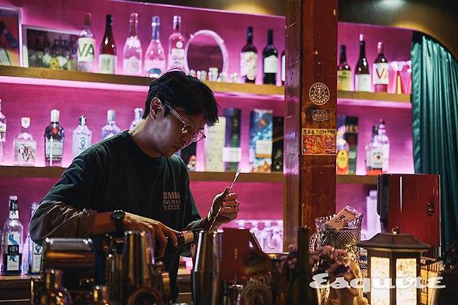 연극배우이자 성우인 김국진 사장은 어려서부터 빈티지 마니아였다. 20대 때부터 동묘시장을 뻔질나게 들락거리며 옷을 샀는데, 그때 느낀 점이 하나 있었다. 젊은 사람들이 이렇게나 많은 동네에 그들이 쉬어갈 만한 곳이 하나도 없다는 것. 830은 그렇게 목마른 자 우물 파듯 만든 공간이다. ‘공간’이라고 얼버무려 쓴 이유는 830의 업태를 선명히 분류하기가 쉽지 않기 때문이다. “처음에는 카페로 시작했죠. 어른들의 놀이터 같은 공간을 만들고 싶었으니까. 그러다가 술을 팔기 시작했고, 지금은 또 라이브 공연도 준비하고 있어요. 커피를 하겠다는 친구가 있어서 다시 카페도 겸할 것 같긴 한데, 그 친구가 갑자기 잠수를 타서 또 어떻게 될지 모르겠고….” 김국진 사장은 공간부터 만들어 놓고 뭘 할지 고민한 게 바보 같은 일이었다며 너스레를 떨었지만, 사람들이 830을 찾는 이유에는 그 ‘무목적’이라는 성격도 크게 작용했을 것이다. 무슨 놀이를 할지 모르는 채로 일단 발길을 옮겨볼 수 있는 곳, 그게 놀이터의 핵심이니까. 830의 진가 역시 커피나 와인, 칵테일 같은 콘텐츠에 있지 않다.