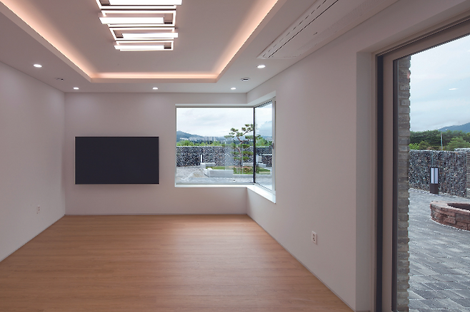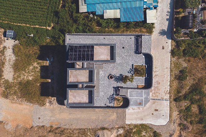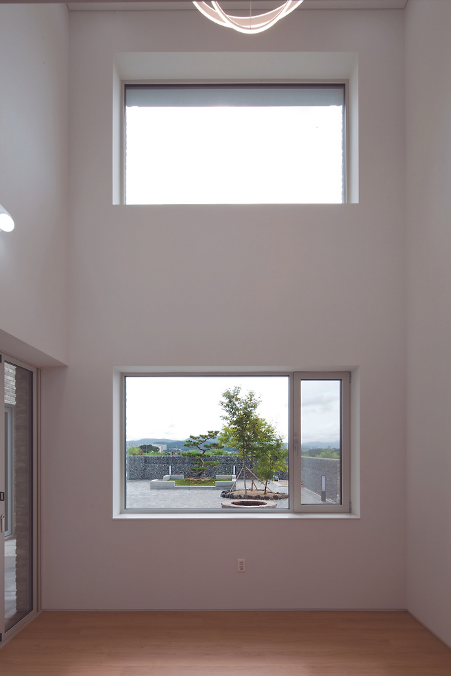 그리고 옹벽 위로 넓은 마당과 건물이 앉혀지는 만큼 마당을 최대한 확보하기 위해 건물을 후면에 배치했다.
