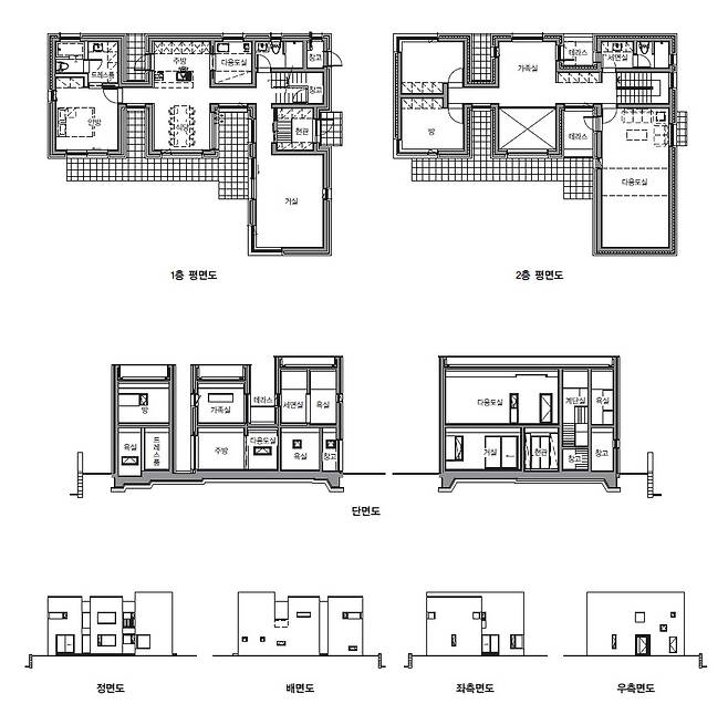 공간 구성 또한 마찬가지로 손님과의 활동을 고려해 계획했다. 현관에서 가장 가까운 곳에 손님과 연계되는 공간을 꾸리고, 가장 안쪽에는 사적인 안방을 둬 의도적으로 공간 사이의 위계를 조성했다.