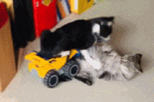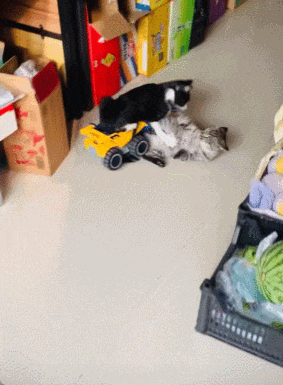 다른 고양이가 "살려줘! 나 대형 트럭에 치인 것 같아!"라며 도망치기 바빴습니다. 마치 톰과 제리가 현실이 된 것처럼 보였습니다! 트럭을 휠체어처럼 탄 고양이는 마치 사이보그 다리를 가진 것처럼 강력한 존재감을 드러냈습니다.