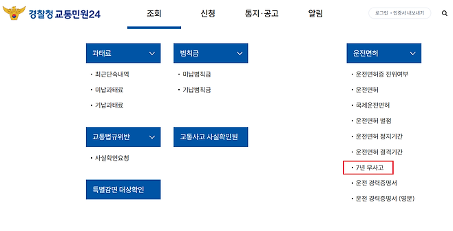 경찰청교통민원24(이파인) / 혹은 정부 24 웹사이트나 어플리케이션을 통해 편리하게 조회해보실 수가 있습니다. 경찰청 웹사이트의 경우 [경찰청 교통민원24 웹사이트] ->[조회]-> [운전면허·조사예약] -> [7년 무사고 조회] 탭을 통해 본인의 무사고 이력을 조회해 볼 수 있습니다. 혹은 정부 24 웹사이트에서 [7년 무사고]로 검색하신다면 해당 조회 페이지가 등장합니다. 단, 1종 자동 면허가 정식 도입되는 10월 20일 이전까지는 1종 자동(한정)으로의 갱신은 불가능합니다. 다만 2종 보통(수동) -> 1종 보통(수동) 갱신의 전례를 보았을 때, 1종 운전면허증 갱신 대상자가 된다면 가까운 면허시험장을 방문하여 적성검사를 받고 1종 보통면허증으로의 갱신이 가능합니다. 2종 자동 면허를 보유한 7년 이상 무사고 운전자분들께서도, 이 시기를 전후해 1종 자동 면허로 갱신 여부를 조회할 수 있을 것으로 예상됩니다.