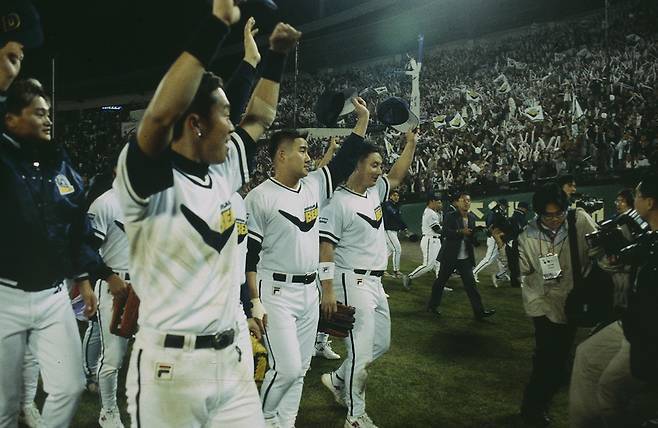 당시 서울 잠실구장은 3만500명, 부산 사직구장은 3만154명을 수용했는데 그해 한국시리즈는 7차전까지 진행됐다. 아침부터 가랑비가 내린 2차전(2만202명)과 6차전(2만500명)을 제외하고 매진 사례를 이루면서 총 21만634의 관중이 들어왔다. 이는 역대 단일 한국시리즈 최다관중 기록으로 역사의 한 페이지를 장식하고 있다.