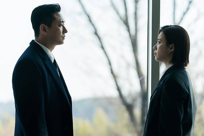 디즈니+<지배종>에서 콤비를 맞추는 '경호원' 주지훈과 'CEO' 한효주