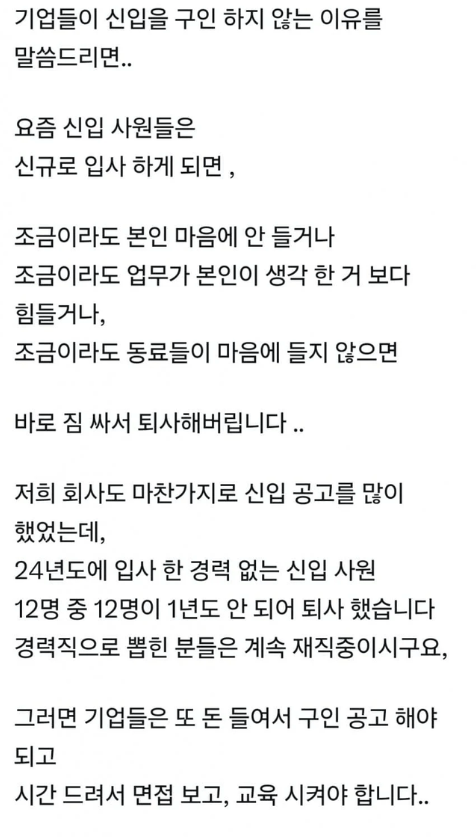 요즘 기업들이 신입사원을 잘 안 뽑는 이유jpg