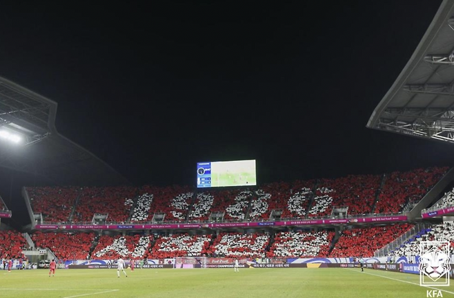 국가대표팀 응원단 ‘붉은악마’는 경기 전 대규모 카드섹션을 통해 ‘WE 대한’이라는 문구를 선보일 예정입니다. 이 문구에는 11회 연속 월드컵 진출의 자부심과 팬과 선수단이 함께 이뤄낸 성과에 대한 메시지가 담겨 있습니다.