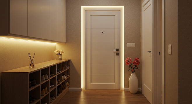 특히 아침 햇살이 잘 들지 않는 북향 현관이라면, 따뜻한 색감의 간접등, 또는 은은한 향의 디퓨저를 활용해보세요.