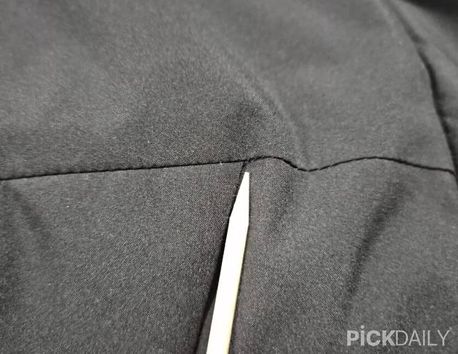 패딩의 특성상 솜이나 깃털 같은 보온 충전재를 넣고 봉제하는 과정에서 박음질 구멍이 생길 수 밖에 없다.