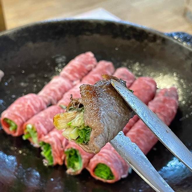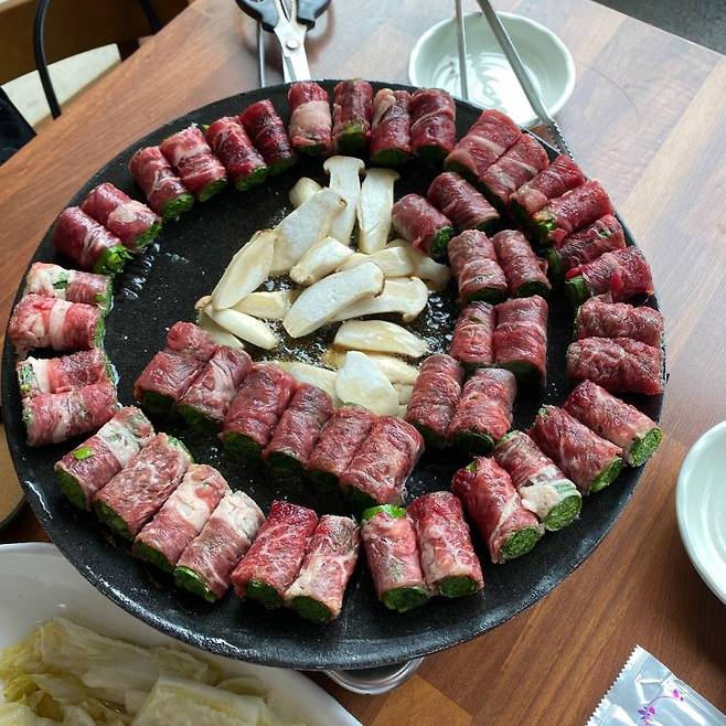 수도권에만 손말이고기 맛집이 몰려있다고 아쉬워하지는 말자. 부산 기장에 위치한 아수라가 그 아쉬움을 달래준다. 이곳은 부추, 깻잎이 들어가 있어 파주의 삼고집과 유사한 형태를 띄고 있다. 얇지만 풍미 가득한 손말이고기를 살짝 익혀 특제 땅콩소스에 듬뿍 찍어 먹어보자. 소스가 부추와 고기 사이로 스며들어 육즙과 함께 폭발하고, 부추와 깻잎의 향이 깔끔하게 끝 맛을 완성해 준다. 고기를 구울 때 중앙에 들기름과 함께 버섯을 구워내는데 겉이 노릇노릇하게 익으면 고기만큼 풍미를 강하게 느낄 수 있다.