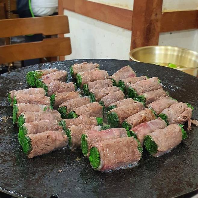 손말이 고기는 이곳의 창업주 박순례 할머니가 처음 개발한 요리로, 우둔살에 깻잎과 쪽파, 미나리를 넣어 말아낸 후 철판에서 구워 먹는 음식이다. 언뜻 보고 간단하고 예상이 가는 맛이라고 생각하면 큰 오산. 풍부한 육즙이 아삭한 야채 사이로 스며들어 달큰한 맛에 고소함까지 더해져 끊임없이 손이 간다. 고기를 다 먹기 전 된장찌개를 시키면 고기가 올려진 철판에 가운데 된장찌개가 끓여지는 진풍경을 보게 된다. 시래기가 듬뿍 들어간 된장찌개로 깔끔하게 식사를 마무리하면, 왜 이수근이 ‘죽기 전에 먹고 싶은 맛’이라고 했었는지 이해가 갈 것. 원주가 너무 멀다면, 아들 부부가 운영하는 광화문점도 있으니 참고하자.