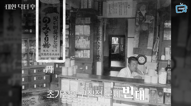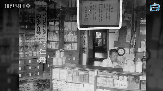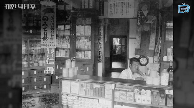 이 사진은 100년 전 약국 내부를 보여주고 있는 귀한 사진입니다.