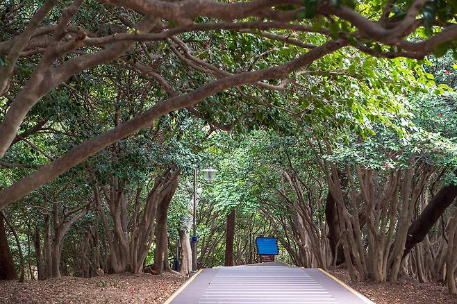 📷 포인트: 동백나무 터널, 오동도 등대 전망대, 바다 데크길